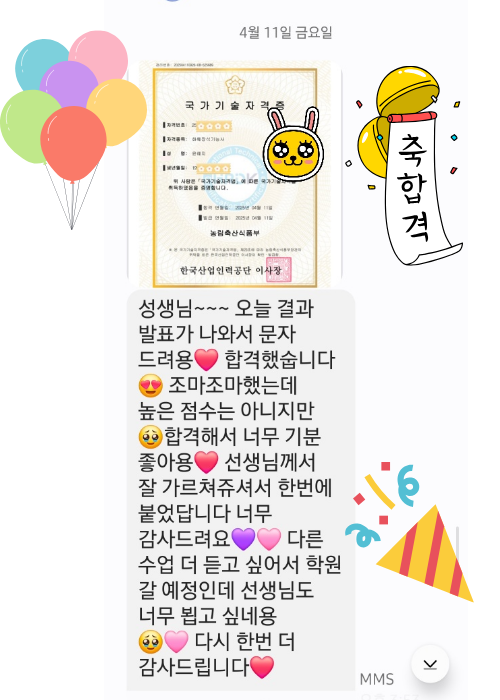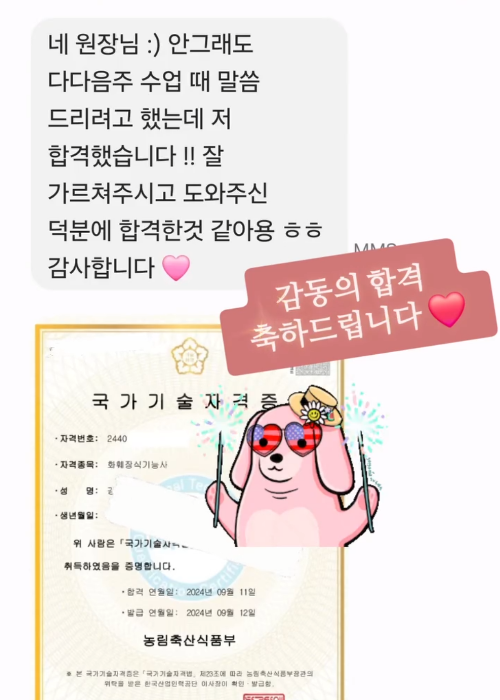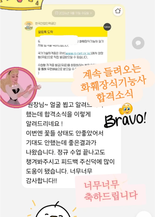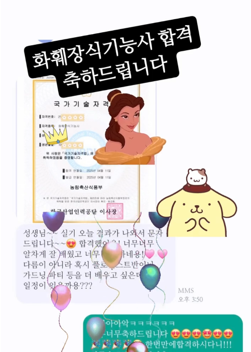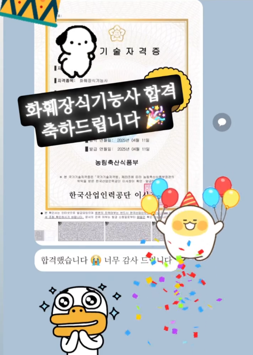 "수많은 합격 수기가 증명하듯, 지금 이 순간에도 많은 수강생이 합격의 기쁨을 누리며 플로리스트로서의 커리어를 증명하고 있습니다. 탄탄한 실력을 갖춘 전문가로의 시작, 저희가 함께 하겠습니다."